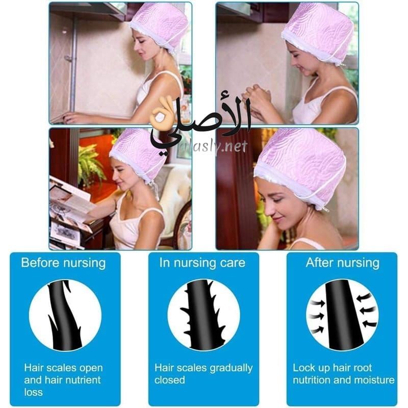 بونية حرارية كهربائية Elenctronic Suffocated Oil Cap للشعر تساعد على فتح مسام الشعر وزيادة امتصاص الزيوت والكريمات بفضل حرارة تصل إلى 70 درجة، مثالية لعلاج الشعر الجاف والتالف في المنزل.