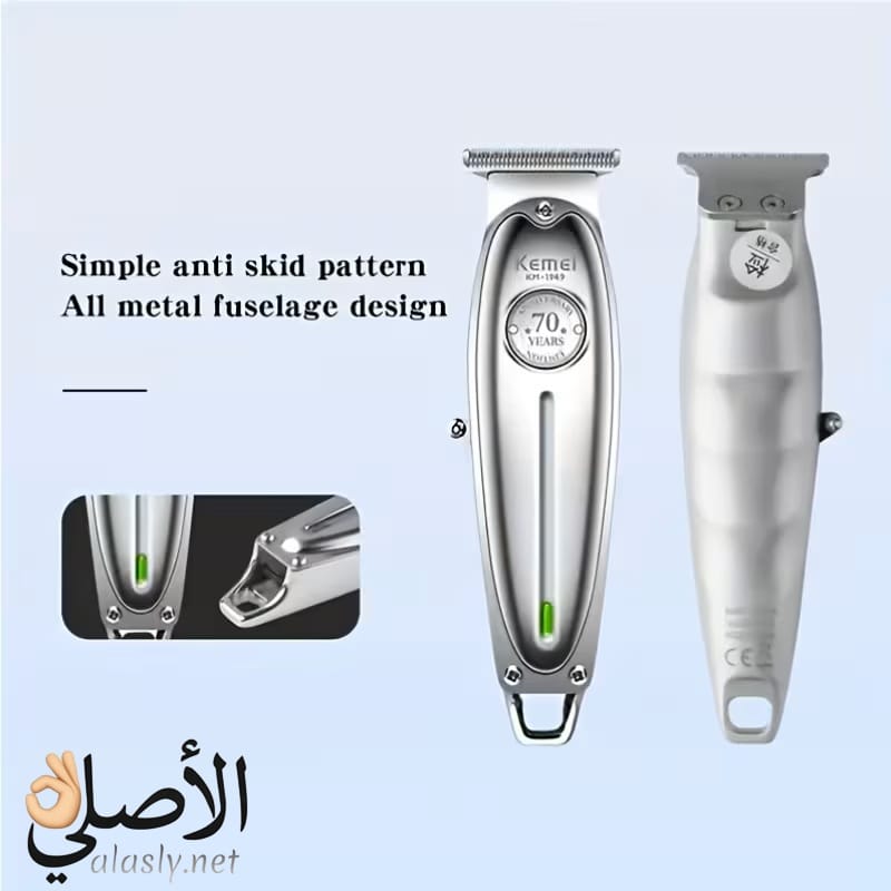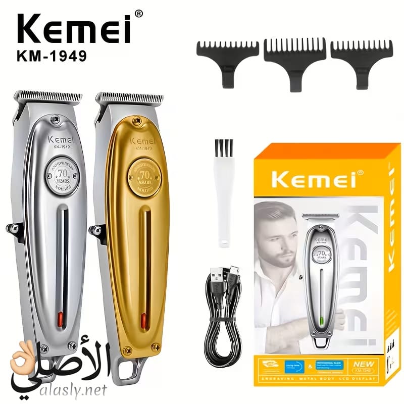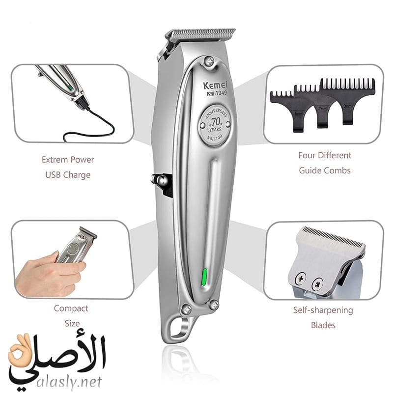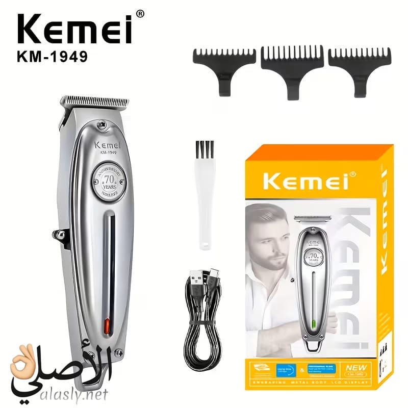 ماكينة حلاقة Kemei KM-1949 احترافية – جسم معدني كامل + شحن USB + تحديد وفيد دقيق