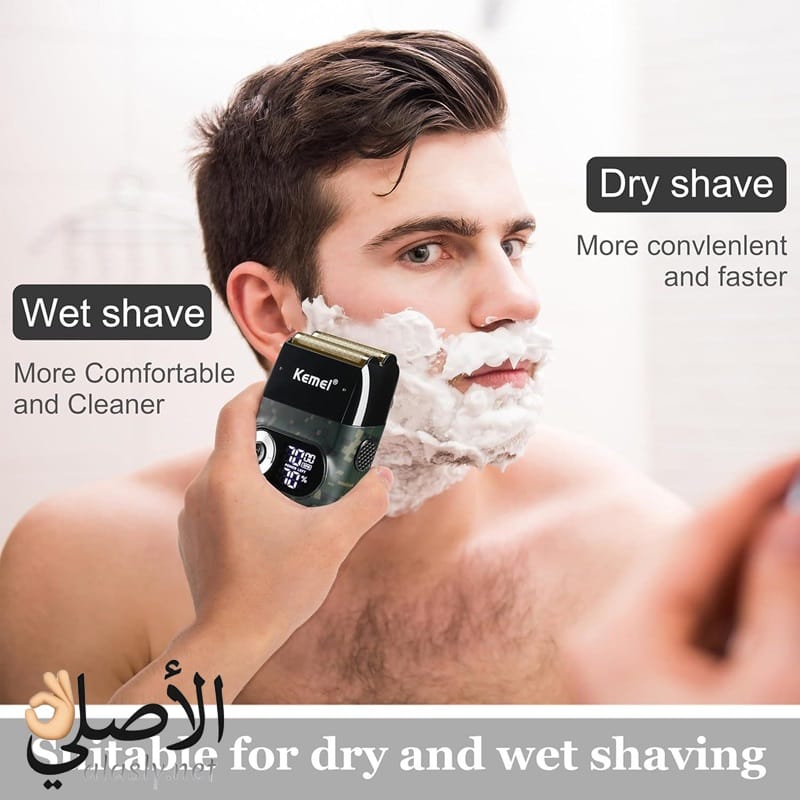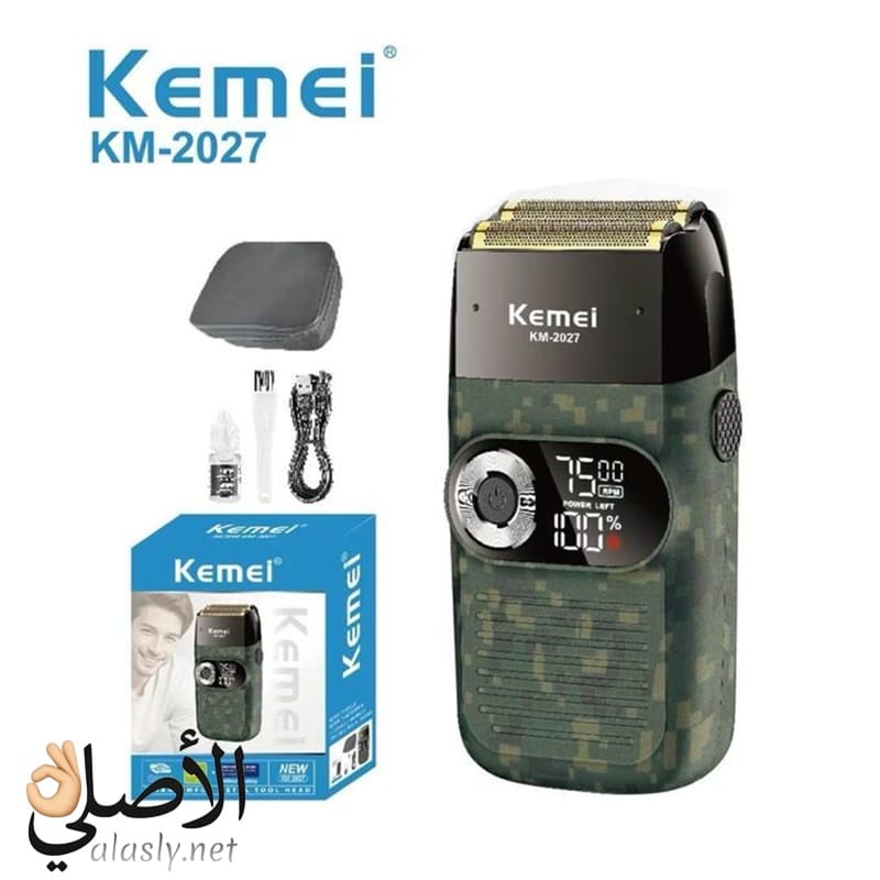 ماكينة حلاقة كهربائية كيمي KM-2027 من Kemei توفر حلاقة دقيقة وسريعة بشفرات فولاذ مقاوم للصدأ، شاشة LCD لمتابعة الشحن، تصميم مقاوم للماء، وبطارية قابلة لإعادة الشحن تمنحك أداءً ثابتًا للاستخدام اليومي في المنزل أو السفر.