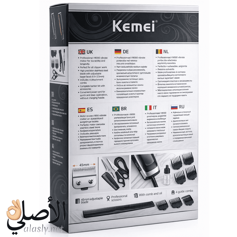 ماكينة حلاقة Kemei KM-4702 هي ماكينة تشذيب احترافية مزودة بشفرات حادة ومجموعة ملحقات كاملة، توفر حلاقة دقيقة وسهلة للشعر والذقن في المنزل أو الصالون.