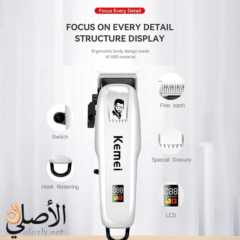 ماكينة حلاقة Kemei KM-PG809A هي ماكينة احترافية توفر حلاقة دقيقة بدون شد الشعر، مع شاشة رقمية وبطارية تدوم طويلاً، مثالية للاستخدام المنزلي والصالونات