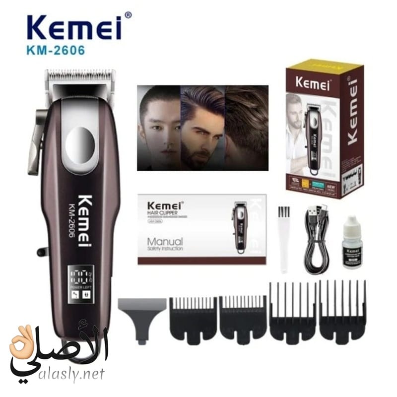 ماكينة حلاقة Kemei KM-2606 هي ماكينة احترافية متعددة الاستخدام توفر محرك قوي مع تقليل الضوضاء وشاشة LCD لعرض البطارية، مثالية للاستخدام المنزلي وصالونات الحلاقة.