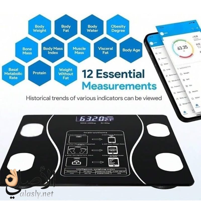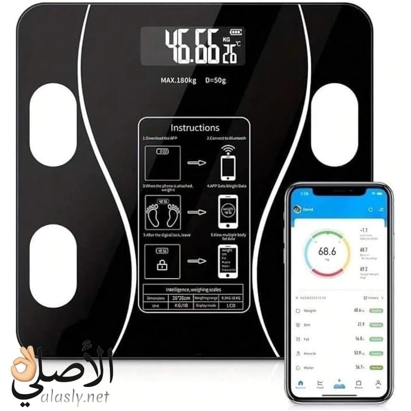 ميزان SMART SCALE 180KG ذكي بيحلل كل تفاصيل جسمك ويربط بالموبايل عشان تتابع تقدمك خطوة بخطوة.