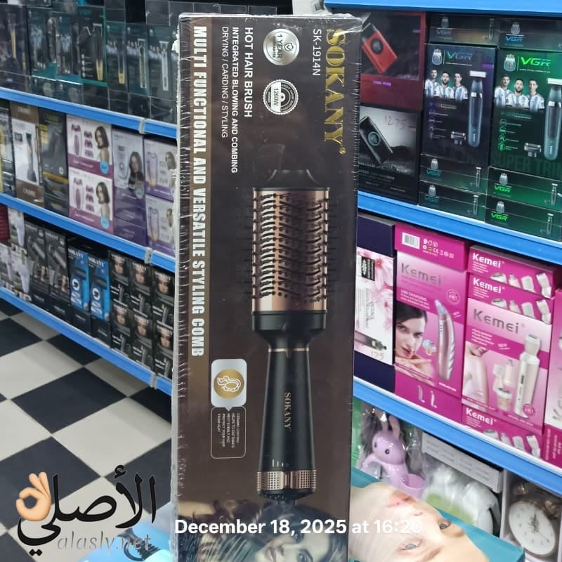 فرشاة تصفيف حرارية Sokany SK-1914N لتجفيف وتنعيم الشعر بسهولة، بتوزيع حرارة متساوي لتصفيف سريع ونتيجة ناعمة بدون هيشان.