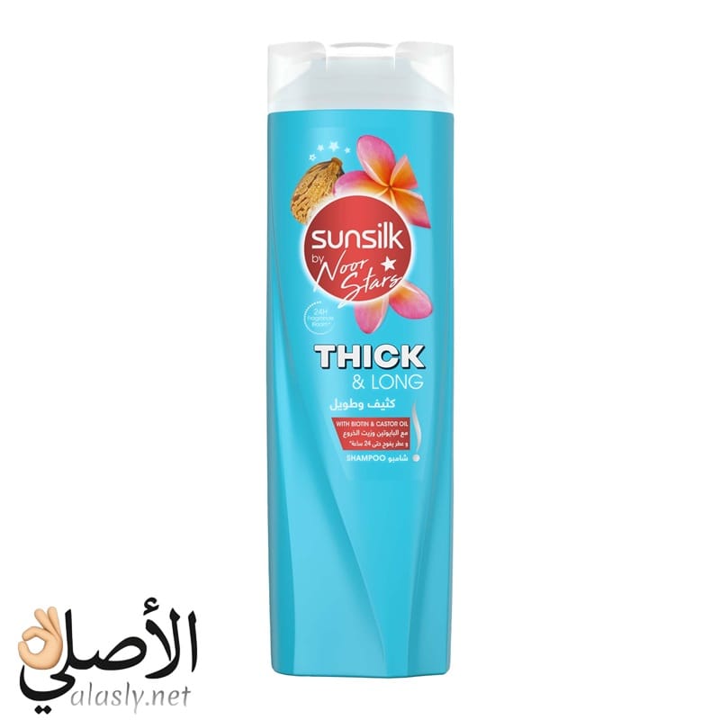 شامبو صانسيلك Sunsilk Thick & Long Shampoo 350ml – تكثيف وإطالة الشعر بالبيوتين وزيت الخروع
