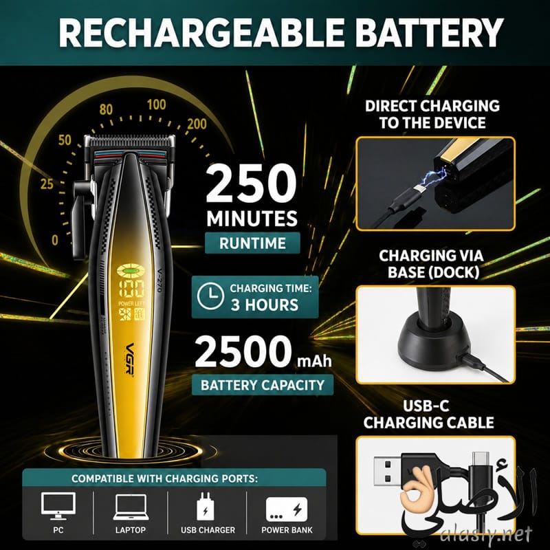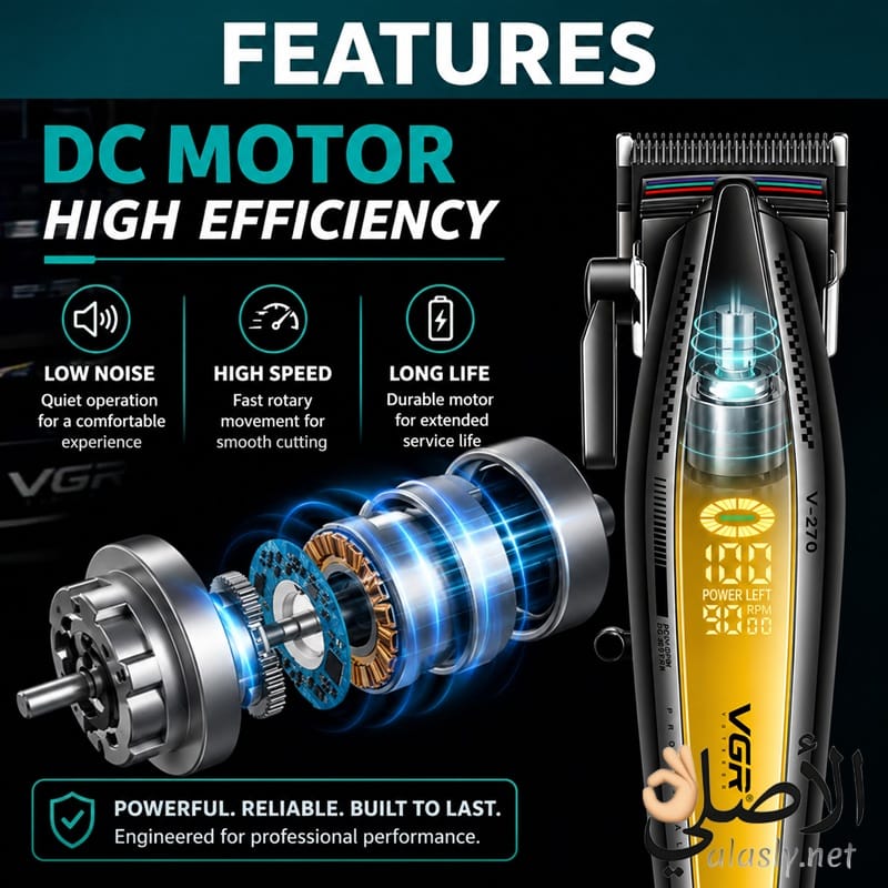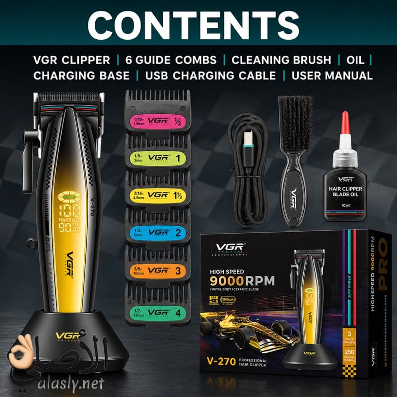 ماكينة حلاقة VGR V-270 احترافية 9000RPM بشاشة ديجيتال وبطارية 2500mAh – أداء قوي يدوم طويلاً